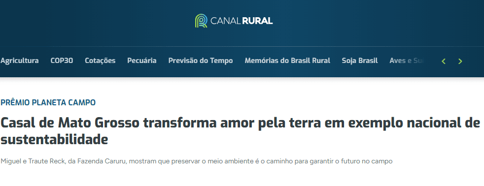 O exemplo da Fazenda Caruru (MT) e sua conquista no Prêmio Planeta Campo 2025
